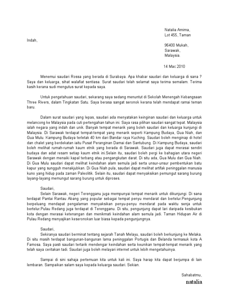 Contoh Karangan Surat Tidak Rasmi 12 Seorang sahabat anda dari brunei menulis surat kepada anda untuk mengetahui tempat-tempat yang menarik di negeri andaBalas surat sahabat anda itu selengkapnya. Friday 21 March 2014. Frasa Gramatis Dalam Karangan Surat Tidak Rasmi Surat Rasmi Penanda Wacana Karangan Tajuk Penting Karangan 2009 Karangan Bangunan Bersejarah Karangan.